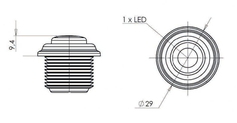 Monteras genom att man borrar ett 21mm hål och sedan trär man in markeringsljuset som hålls på plats tack vare gummiflänsarna.
